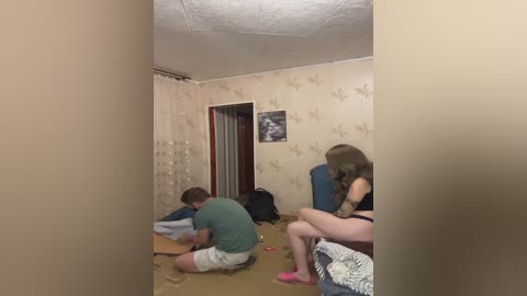 bysi_pysi - Video of two young women in a bedroom: one with long blonde hair, green top, and tattoos; the other with light skin, wearing a sheer black lace top.