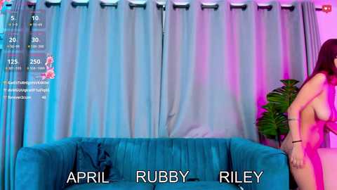 _misterios_ - Video of two young women, one in red lace lingerie and another in a pink lace bra, posing sensually in a dimly lit room with purple lighting and colorful wall art.